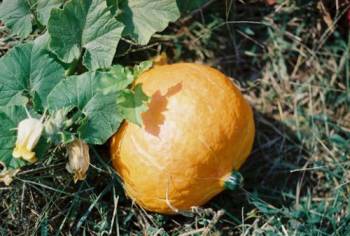 | | Vines bear 10- to 15-pound, orange fruit. |